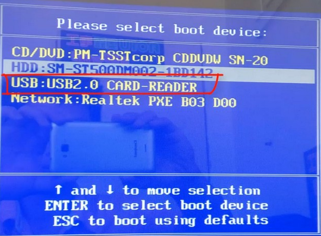 6、我们打开电脑,快速间歇地按热键,进入快速启动菜单,选择带usb的选项,按回车键,进入PE选择页面。