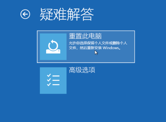 2. 重复开关机3次,出现以下页面时,选择“故障排除”。