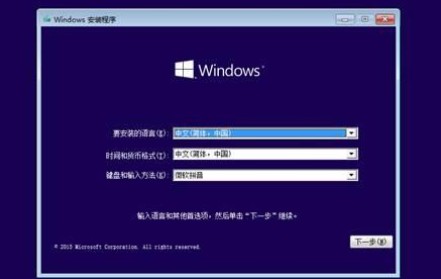 3、之后就会从我们刚刚插入的光盘中启动win10安装程序了,在其中选择设置系统的语言、输入法,然后点击“下一步”;