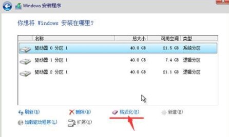 8、这一步是选择系统安装磁盘,选择分区1的系统分区,点击“格式化”,再点击“下一步”;