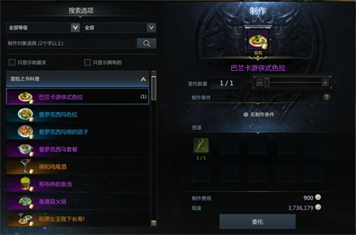 巴兰卡游侠式沙拉:去伯尔尼城找厨师-Stria制作成品菜。做两道菜需要提前准备1800银币;