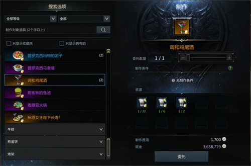 新鲜调制的鸡尾酒:去烹饪材料商人处购买烹饪材料,购买下图中的烹饪材料-新鲜调制的鸡尾酒;