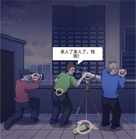 1、首先找到下图中标记的地方:垃圾、相机、裤子、望远镜、手机。