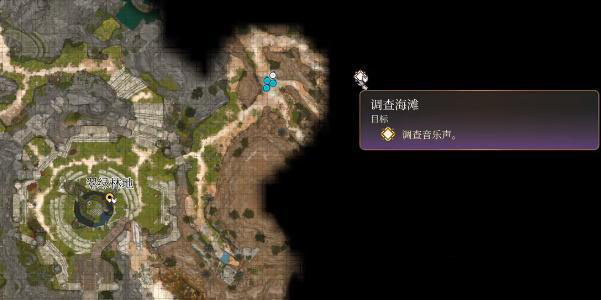 1.首先,玩家需要打开地图,前往【翡翠林地】的东北方,找到目标【调查海滩】。