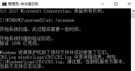 3、按下回车键后系统会自动开始扫描是否有损坏的文件,并且扫描完成后会自动对损坏的文件进行修复,修复过程需要几分钟时间,我们耐心等待一会就可以了;