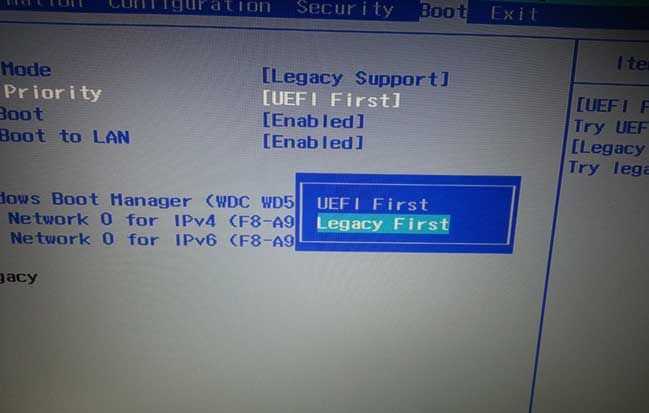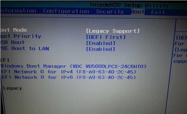 2、改更好后,我们又切换到Security 页面,把Boot Mode 由Uefi更改为“legacy Support”,,如下图;