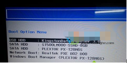 4、更改完成后按F10或 FN+F10保存并重启,然后我们按F12或FN+12 就可以在启动菜单中看到我们的U盘启动盘了,之后就是跟平常装win7系统一样,先分份后安装Ghost Win7系统了。