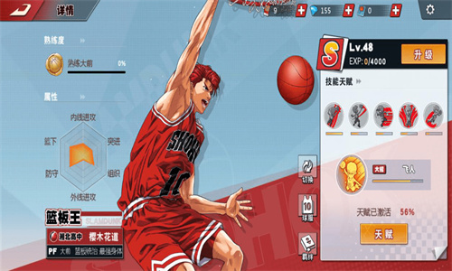 短发了的樱木花道是整个游戏里面的首个进阶角色,比原来的樱木强上许多,而且还是整一个游戏里面为数不多无论是外线还是内线都非常强悍的角色,依靠着自己的挑球和篮板能力,使得他在争夺球权的时候鲜有对手。