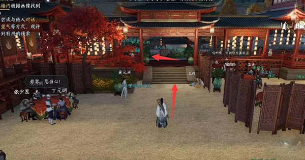 1. 范楼联友在走廊左侧。玩家来到番楼坐标(895,1255),点击使用视野图标并向左走。