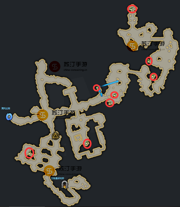 托特里奇命运方舟:8 个Mokoko 种子。地图上的红圈标记,已经标出了8个Mococo地点。 Mococo在地图上的位置比较分散。玩家可以规划相应的路线。具体地点如下: