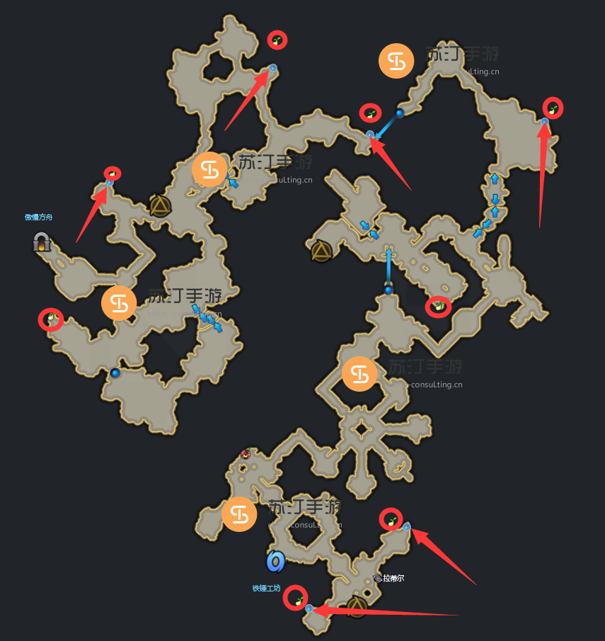 命运方舟应许之地:9 颗Mokoko 种子。地图上所有的红肩都是隐藏入口。总共需要玩家打开6个隐藏入口。具体位置已经整理出来,如图:
