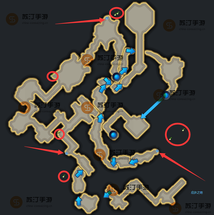 1.地图上红色箭头位置为隐藏入口: