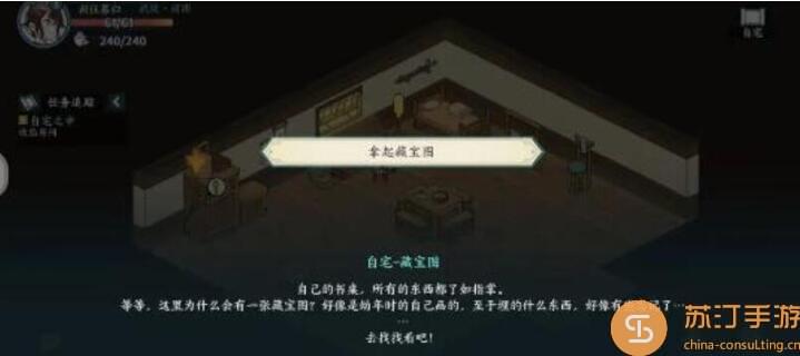 2.进入家中,可以看到房间桌子上的藏宝图。