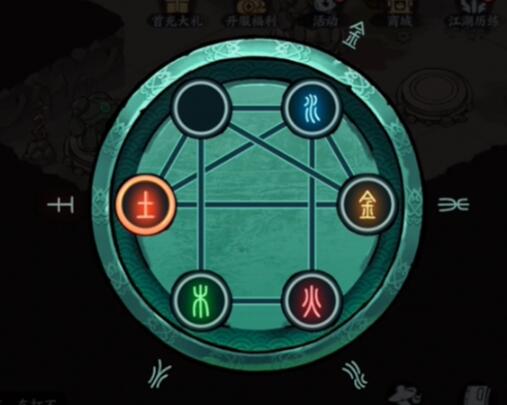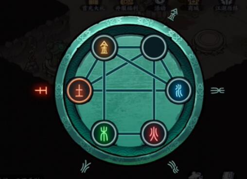 5.将[木]移动到[金]的位置,将[火]移动到[木]的位置,将[水]移动到[火]的位置。