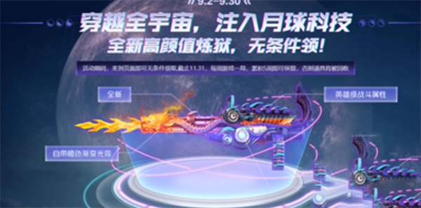 1、玩家进入活动页面即可无条件领取武器【加特林炼狱-月皮】;