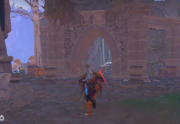 1、玩家接到探路剑与寺任务后,按照任务引导到达下图所示位置。