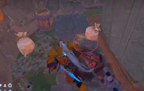 3.进入建筑物后,走到墙后往下看,可以看到下图红圈内的宝藏。