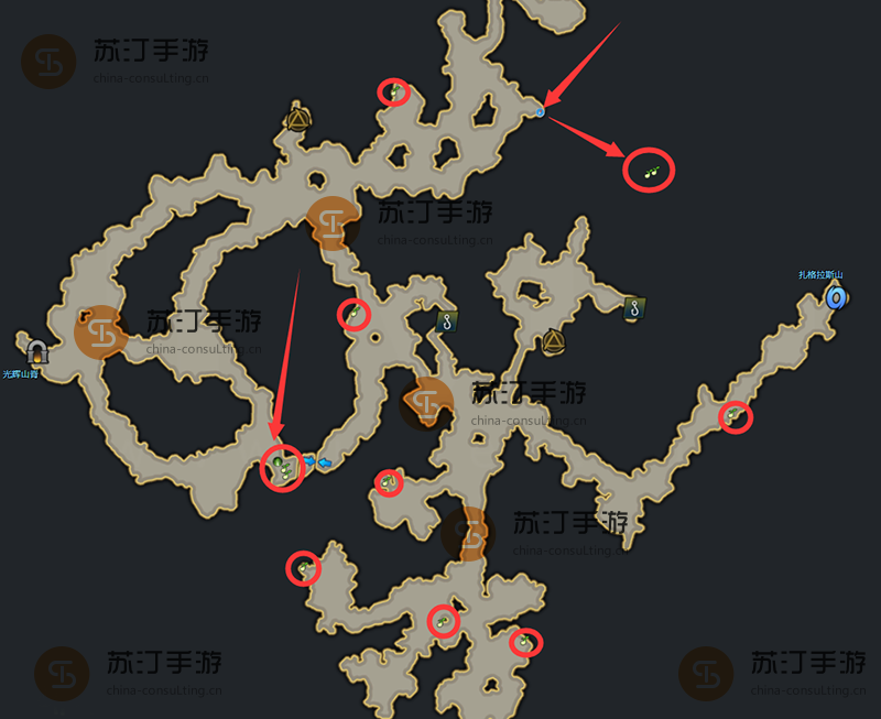 以上是《命运方舟》中Mokoko的位置分布图。每个红圈位置就是Mokoko的位置。需要打开隐藏入口的地方已经被标记出来了。玩家可以收藏本攻略或者直接下载图片。寻找吧,飞飞下载站可以继续为您提供更多精彩攻略。