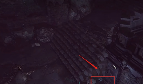 进入第二个炮塔,玩家可以躲在楼梯后面来躲避它。