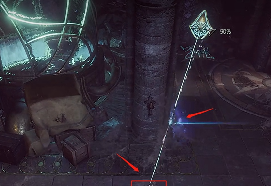 玩家可以通过躲在柱子和装置之间完美避开最后两个炮塔。具体位置如下图所示。
