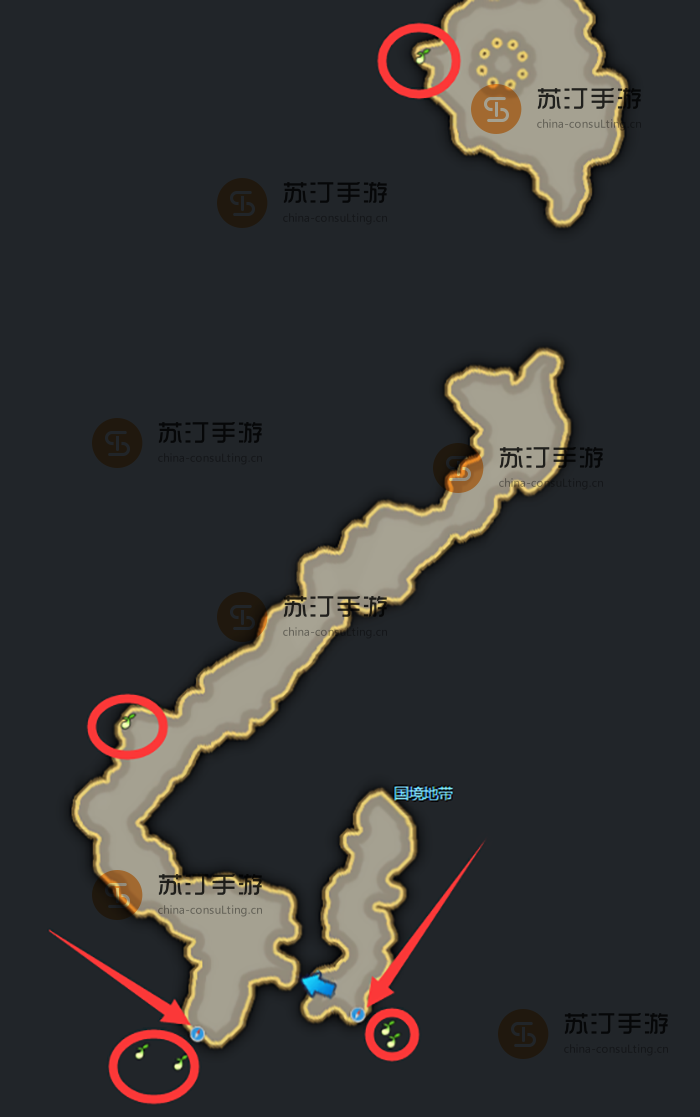 2. 红圈标注的地点均为Mokoko地点。地图上方还散布着Mokoko 种子。详细位置已在地图上标出,如下图: