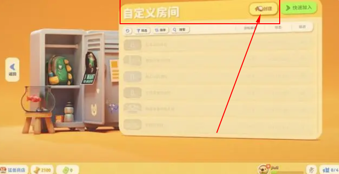 5、如果好友较多,可以选择【自定义房间】,点击【创建】;