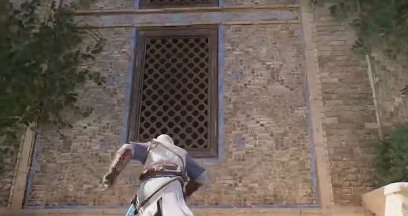 3、当我们来到如图所示的智慧宫外的地方时,我们就从这里继续往上爬。如果有人在,就绕过去或者暗杀。