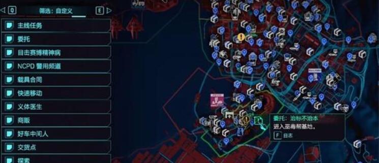 1、打开地图,接受治标不治本的委托任务,前往所在地。