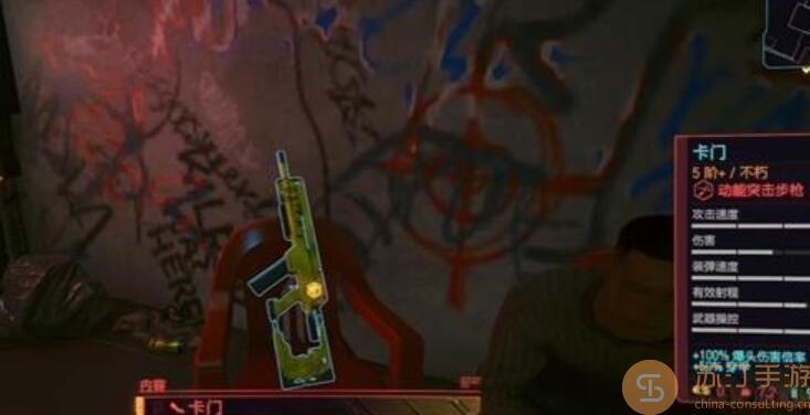 4. 最后,我们可以在涂鸦墙前的红色椅子上看到这个武器。