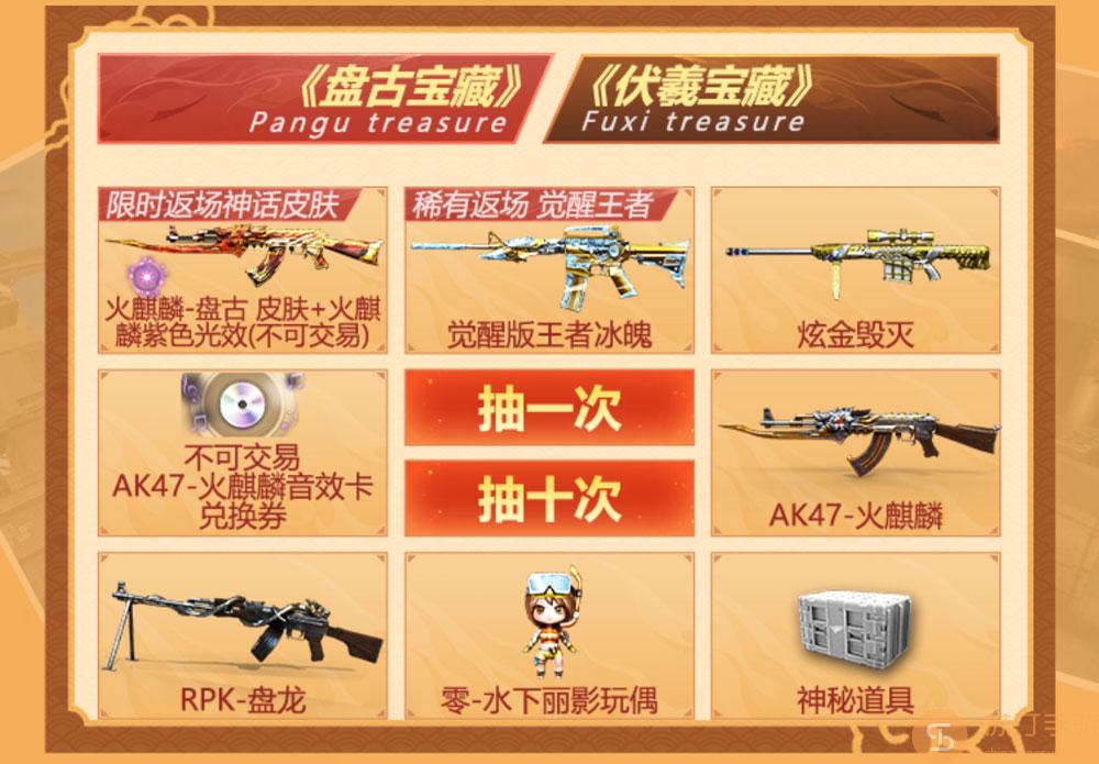 火麒麟-盘古皮肤奖池: