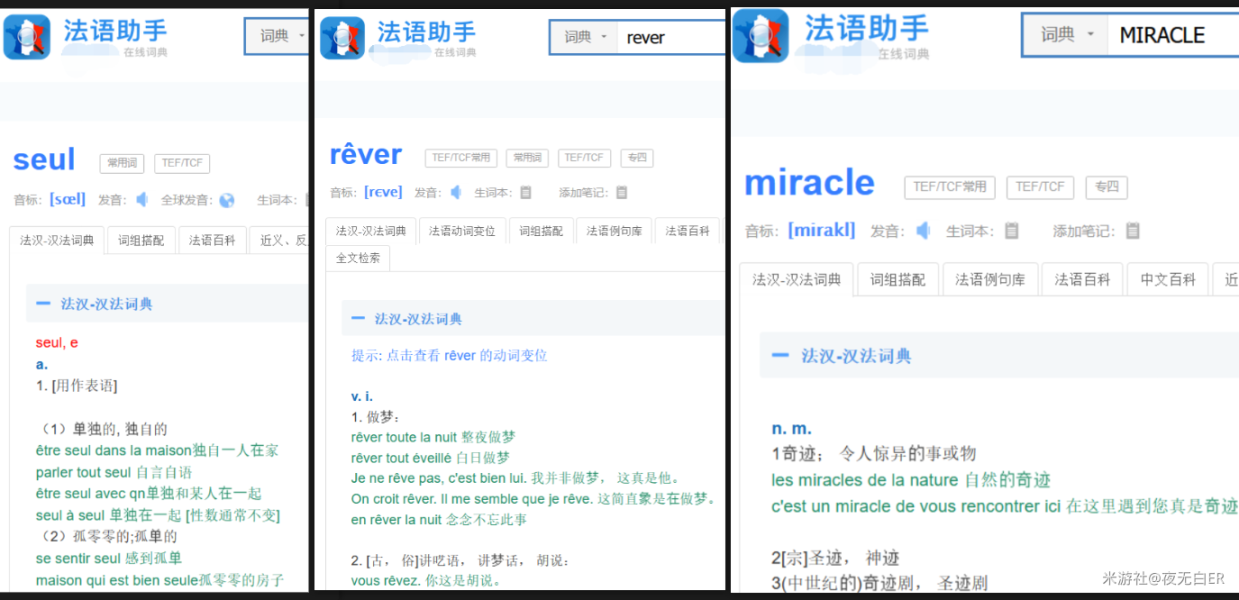 通过汉法在线翻译,这两句话的意思是: