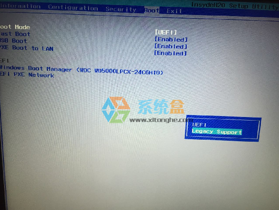 4、选择Boot Mode回车,然后选择为Lcgacy support 回车;