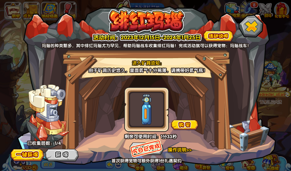 在进入矿井之前,小石头们需要购买足够的氧气瓶!一瓶氧气可以维持30秒。