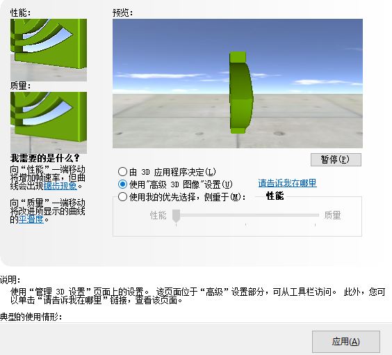2、打开 NVIDIA控制面板后在左侧点击【3D 设置】下面的 通过预览调整图像设置,如图:
