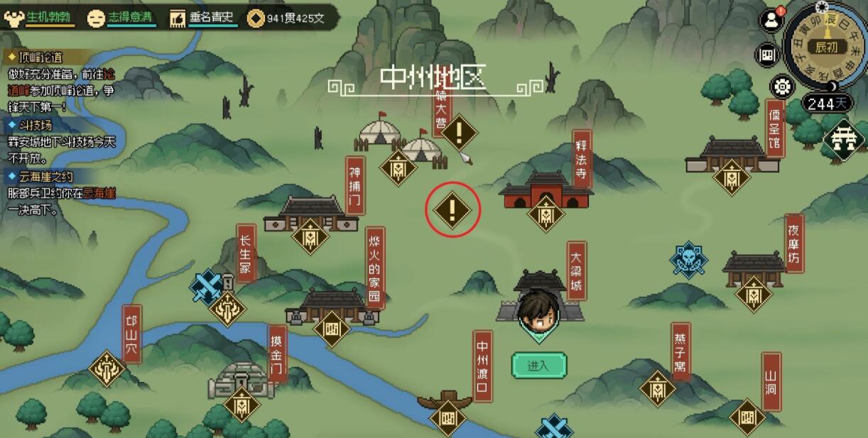 1、玩家达到80级左右后,会解锁一个“!”位于中州地区如下图所示。进去之后,他就会看到完颜昭宁正在和一个江湖汉子打斗。