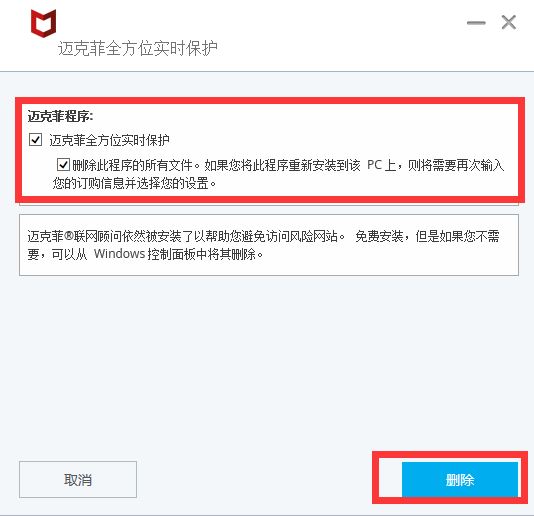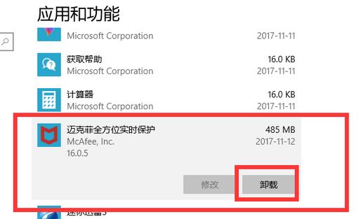 进入系统自带的程序管理界面 找到 迈克菲全方位实时保护 卸载即可 win10是下面这样