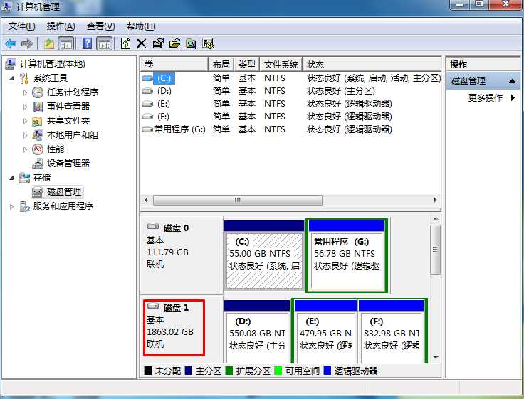 1、首先将移动硬盘连接上电脑,然后右击桌面上的计算机--管理-打开磁盘管理,如下图: