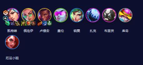凯特琳、俄洛伊、卢锡安、盖伦、锐雯、扎克、布利茨、科奇、厄运小姐