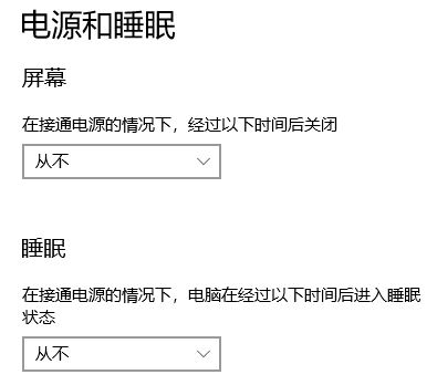 4、在右侧找到“睡眠”,然后将下面在接通电源的情况下,电脑在经过以下时间后进入睡眠状态的开关设置为“从不”即可。