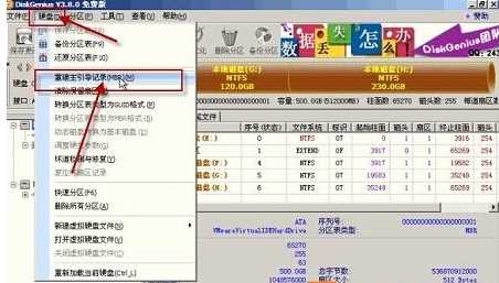 3、打开diskgenius后,先在左侧选择你的【硬盘】,然后点击菜单栏上的“硬盘”——“重建主引导记录mbr”,如下图;系统盒整理 www.xitonghe.com