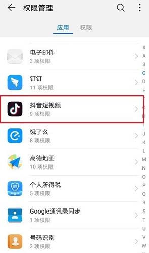 2、我们在应用权限管理中找到抖音应用,直接点击。
