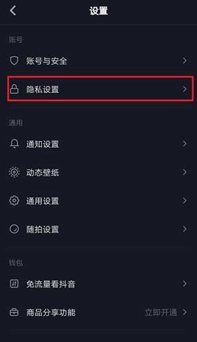 5、然后我们在抖音app的设置中点击隐私设置,如图。