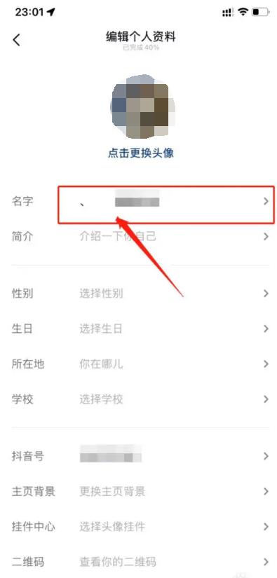 2.然后在个人资料编辑界面中,点击如图所示的名称。