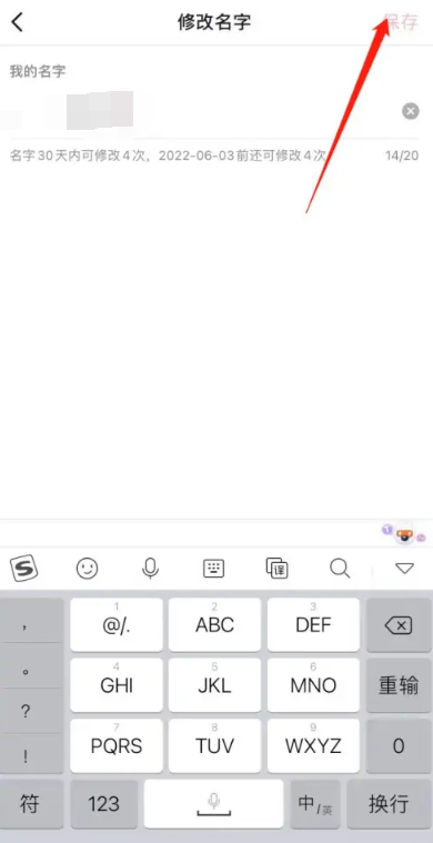 3、最后我们在名字修改界面输入新的昵称,点击保存即可完成昵称修改。