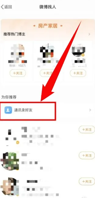 3、然后在微博搜索界面,点击通讯录好友选项,如图。