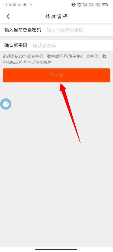 7、最后我们分别输入新旧密码,点击下一步完成密码修改。
