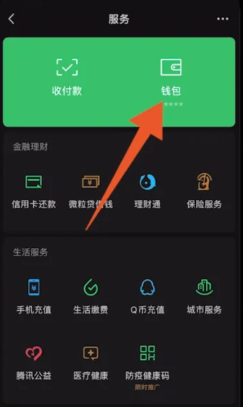 3. 在服务界面中,点击【钱包】服务,如上图所示。