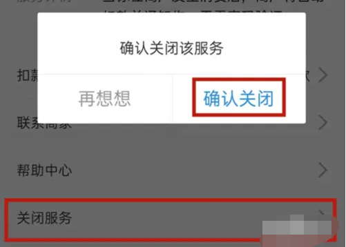 5、最后我们点击关闭服务,然后点击确认关闭即可关闭自动扣费。