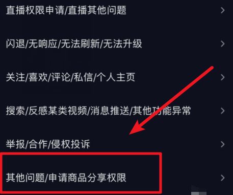 4、然后我们点击其他问题/申请产品共享权限选项,如图。