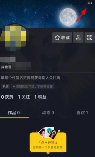 1、首先我们打开抖音,进入个人中心如图。点击右上角的三个点,打开设置界面。